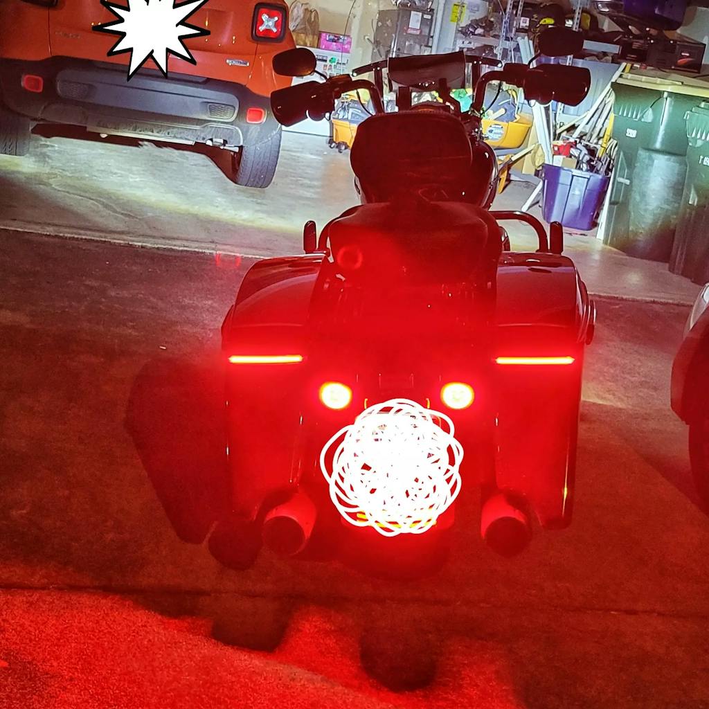 The Fang Rear Signal Light Inserts are a great way to add modern styling and class to your bike while also increasing visibility. We've engineered the lens to amplify light output for maximum brightness as well as DOT compliance. The result is an eye-catching red LED halo driving light and super bright red turn signal.